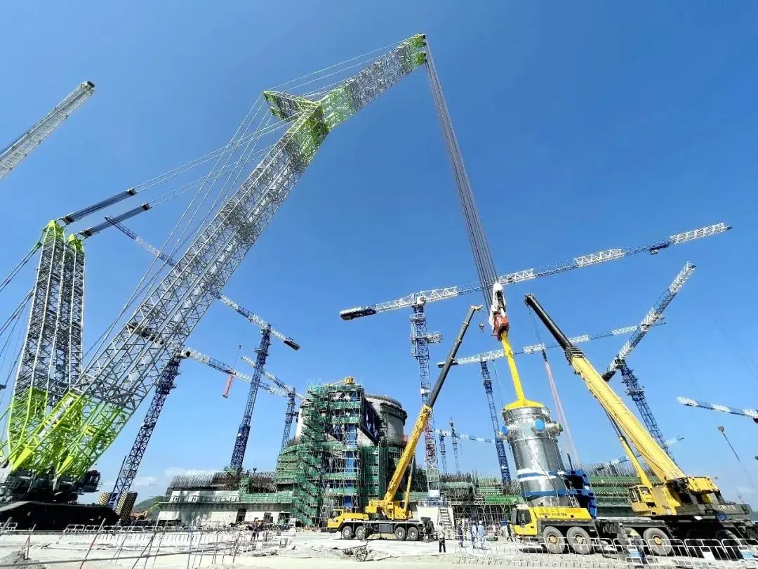 17时06分,历经9个小时的作业,国内首次采用开顶法先行引入施工的华龙一号漳州核电1号机组反应堆压力容器顺利引入就位,吊装成功,创业内核电机组反应堆压力容器引入最优工速,为后续同类机组开顶法施工提供了可靠的经验借鉴。
