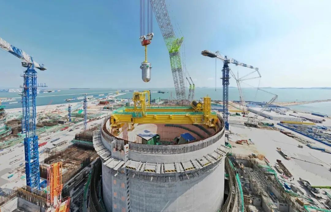 目前反应堆压力容器、蒸汽发生器等核岛主设备已全部开顶引入就位,按计划拟于10月底实现内穹顶吊装。