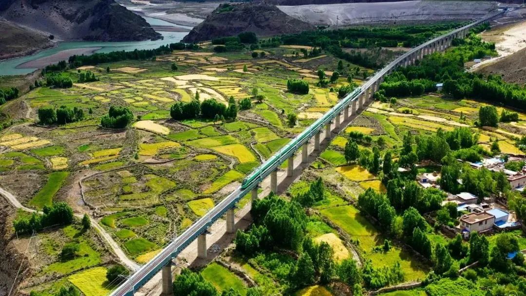 拉林铁路正线全长435.48公里,设计时速160公里,是西藏首条电气化铁路。藏木雅鲁藏布江双线特大桥全长525.1米,主拱跨径430米,桥址处海拔3350米,是目前世界上海拔最高、跨度最大的铁路钢管混凝土拱桥,也是雅鲁藏布江上首座“一跨过江”的铁路桥梁。