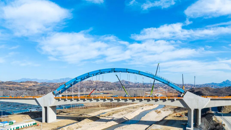 雄忻高铁跨胭脂河大桥连续刚构拱桥顺利建成,全桥用钢量近800吨,吊杆68根,均由bet356的官方网站中文版索具制造施工。