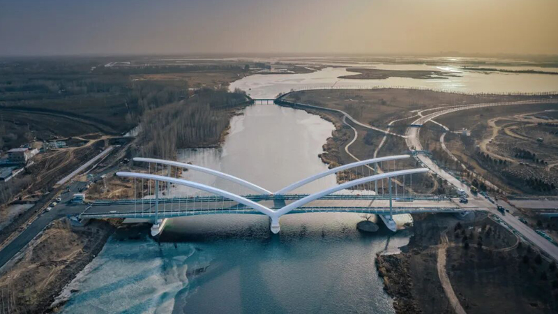 雄安新区地标性建筑白沟引河留通桥工程主体结构顺利完工,大桥上部结构钢构件用量1500多吨,均由bet356的官方网站中文版索具股份有限公司制造施工。