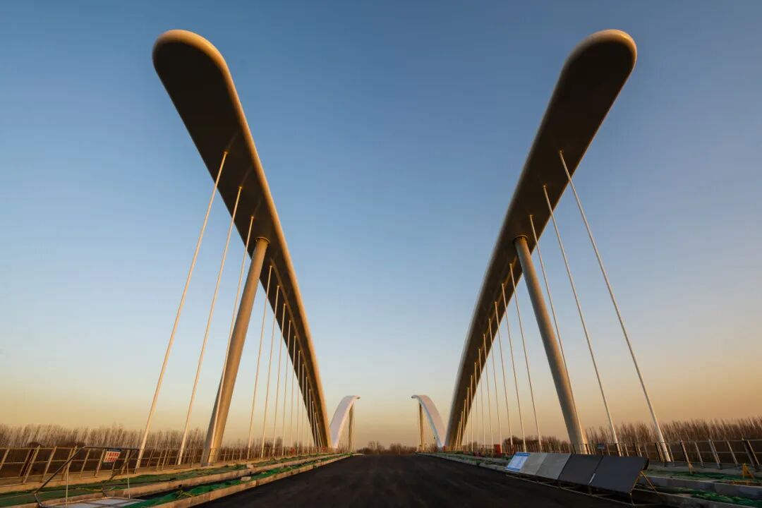 近日,雄安新区地标性建筑白沟引河留通桥工程主体结构顺利完工,伴随着新区建设的火热进行,华北大地广袤的白洋淀上一只白色大鸟腾空而起。大桥上部结构钢构件用量1500多吨,均由bet356的官方网站中文版索具股份有限公司制造施工。
