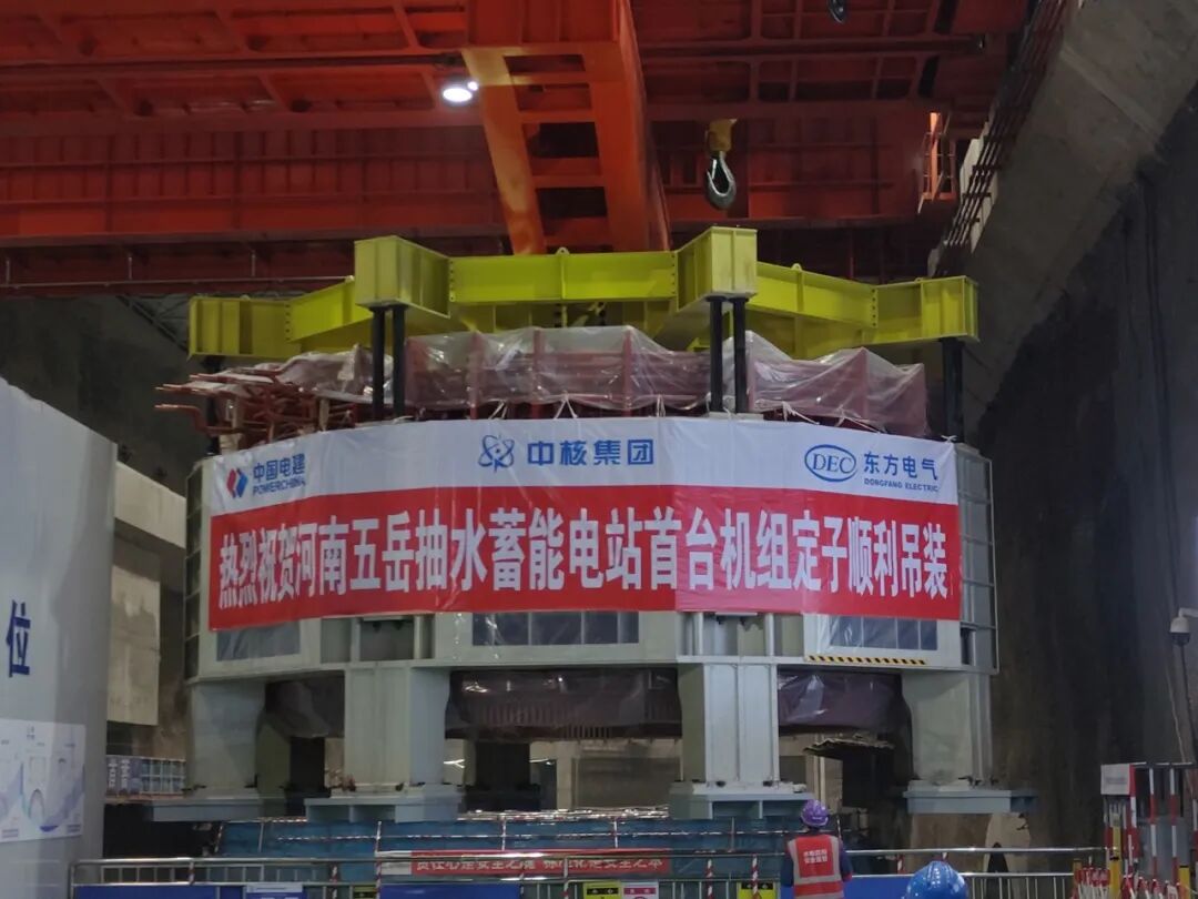 2024年3月27日,中国水电四局承建的河南五岳抽水蓄能电站首台机组定子吊装就位,bet356的官方网站中文版索具制造的350T定子起吊工具全程保障该项目吊装顺利进行,bet356的官方网站中文版索具从项目立项之初就与东方电机技术研发团队反复优化吊装方案,确保吊具与定子外形尺寸高度契合,吊装形式安全可靠。