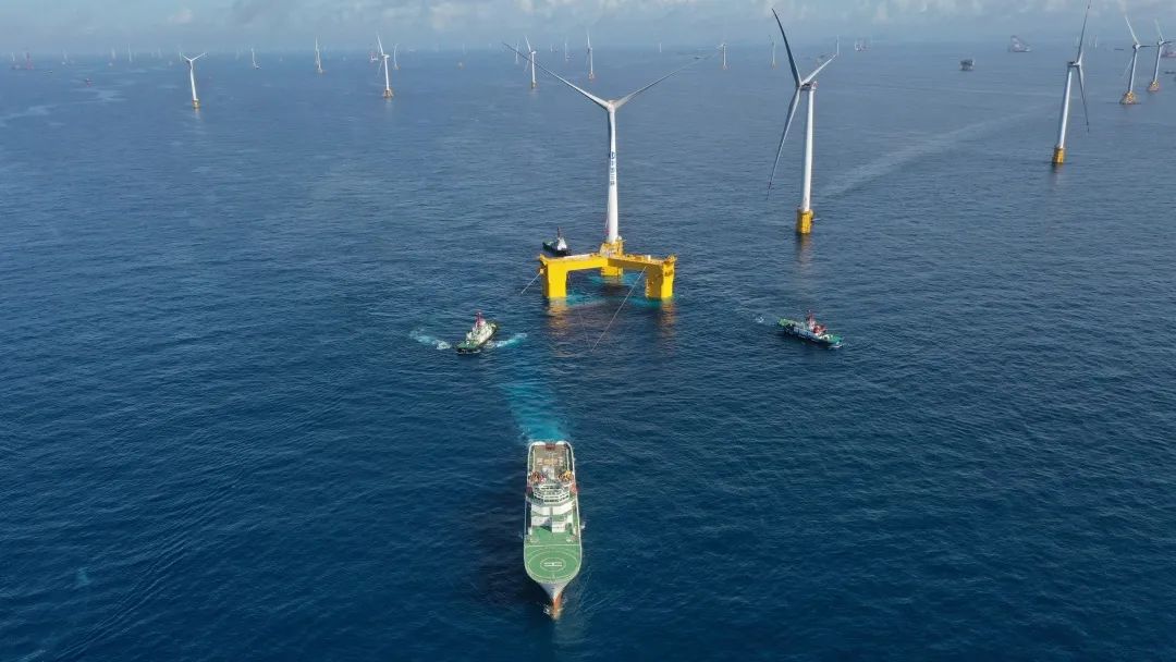 6月7日,海上漂浮式风机永久系泊索在广东阳江项目场完成水下铺设,为后续海上风机浮式基础平台到达安装打下坚实基础。
