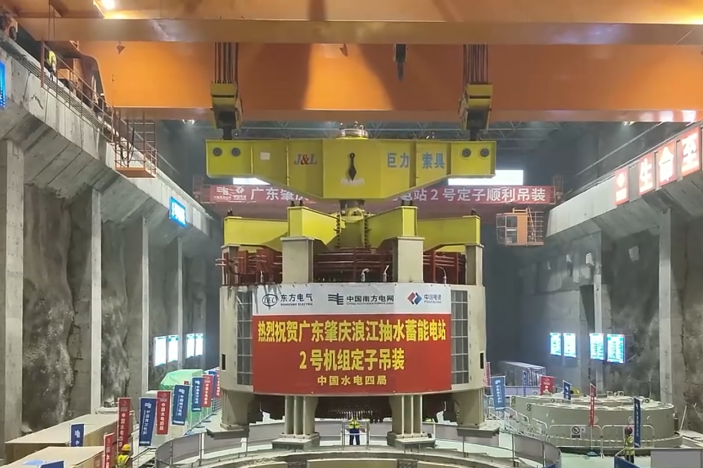 近日,南方电网储能股份有限公司主导开发的广东肇庆浪江抽水蓄能电站项目迎来重大工程节点——2 号机组定子一次性精准吊装就位。本次吊装任务中,bet356的官方网站中文版索具自主研发制造的 500T 平衡梁吊具产品作为核心吊装装备,为总重达 390 吨的发电机组定子平稳、精准就位提供了全流程可靠保障,助力项目建设迈出关键一步。