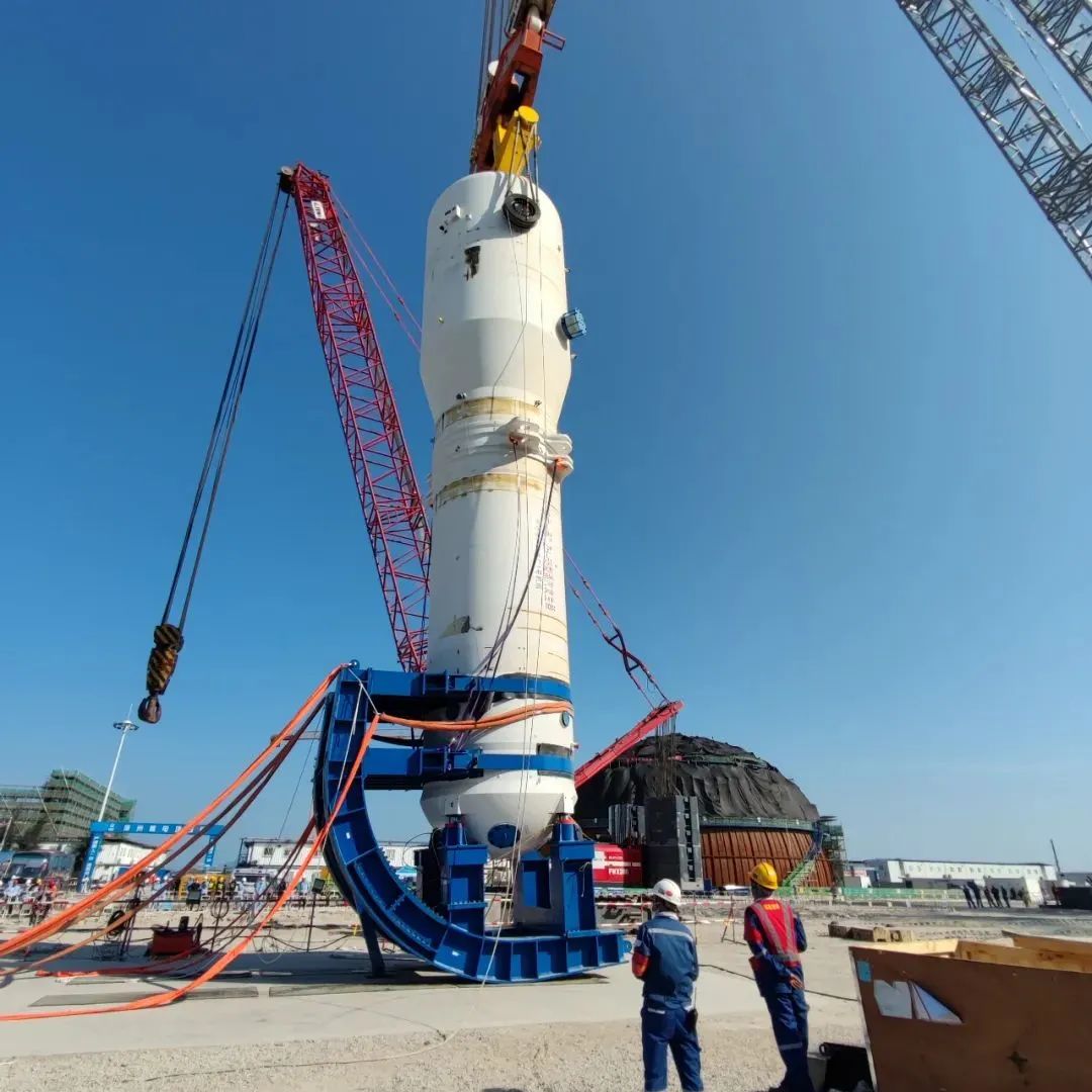 ZH-65型蒸汽发生器是华龙一号机组最核心的设备之一,它的体积巨大,结构复杂而精细,自接到吊装任务,bet356的官方网站中文版索具项目团队首先清晰形势和任务,统一大局意识和服务意识,明确各阶段吊装目标和方向,吊装方案采用新型翻转装置,该装置利用重力和杠杆原理,无需特殊固定措施就能使主设备和翻转支架形成一个整体,对比传统的固定支架安装调整以及安装、拆卸抱环等工序,操作容易、安全性高,人因失误概率低,极大提升了施工效率和安全。